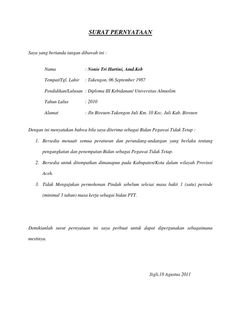 Contoh surat pernyataan diri dan tips membuatnya dengan baik, surat pernyataan diri contoh surat pernyataan diri.